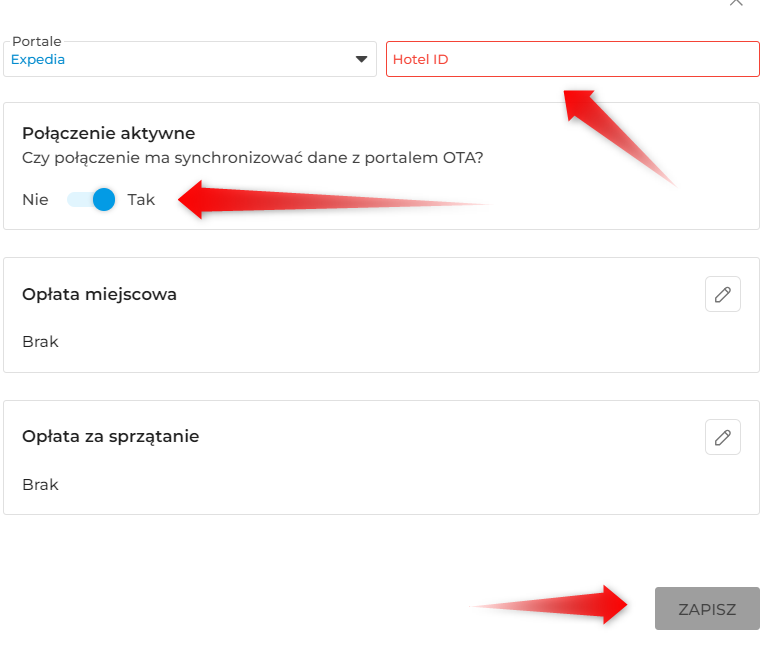 Przejdź do: Menu > Ustawienia > Channel Manager > Łączenie portali OTA