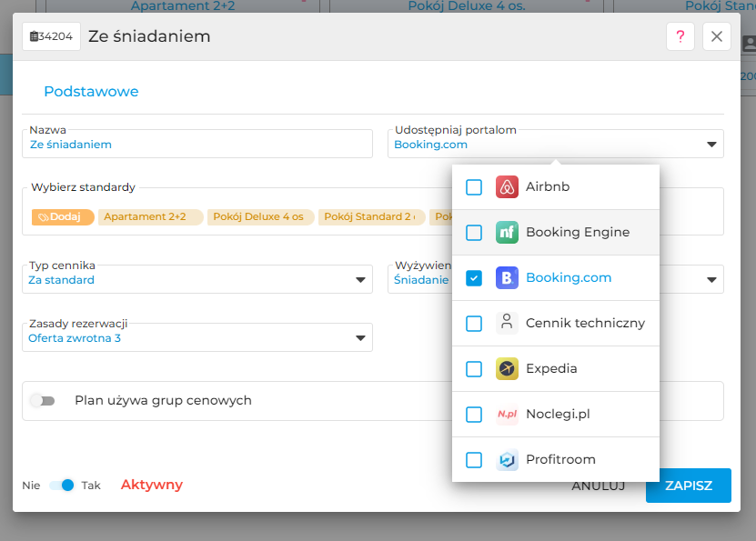 3. W polu "Udostępniaj portalom" zaznaczamy opcję "Booking.com" i klikamy "Zapisz".