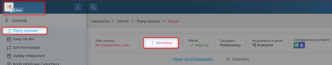 - Aby to zrobić klikamy w Menu > Ustawienia > Cennik > Plany cenowe, po czym wybieramy interesujący nas plan cenowy klikając w niego.